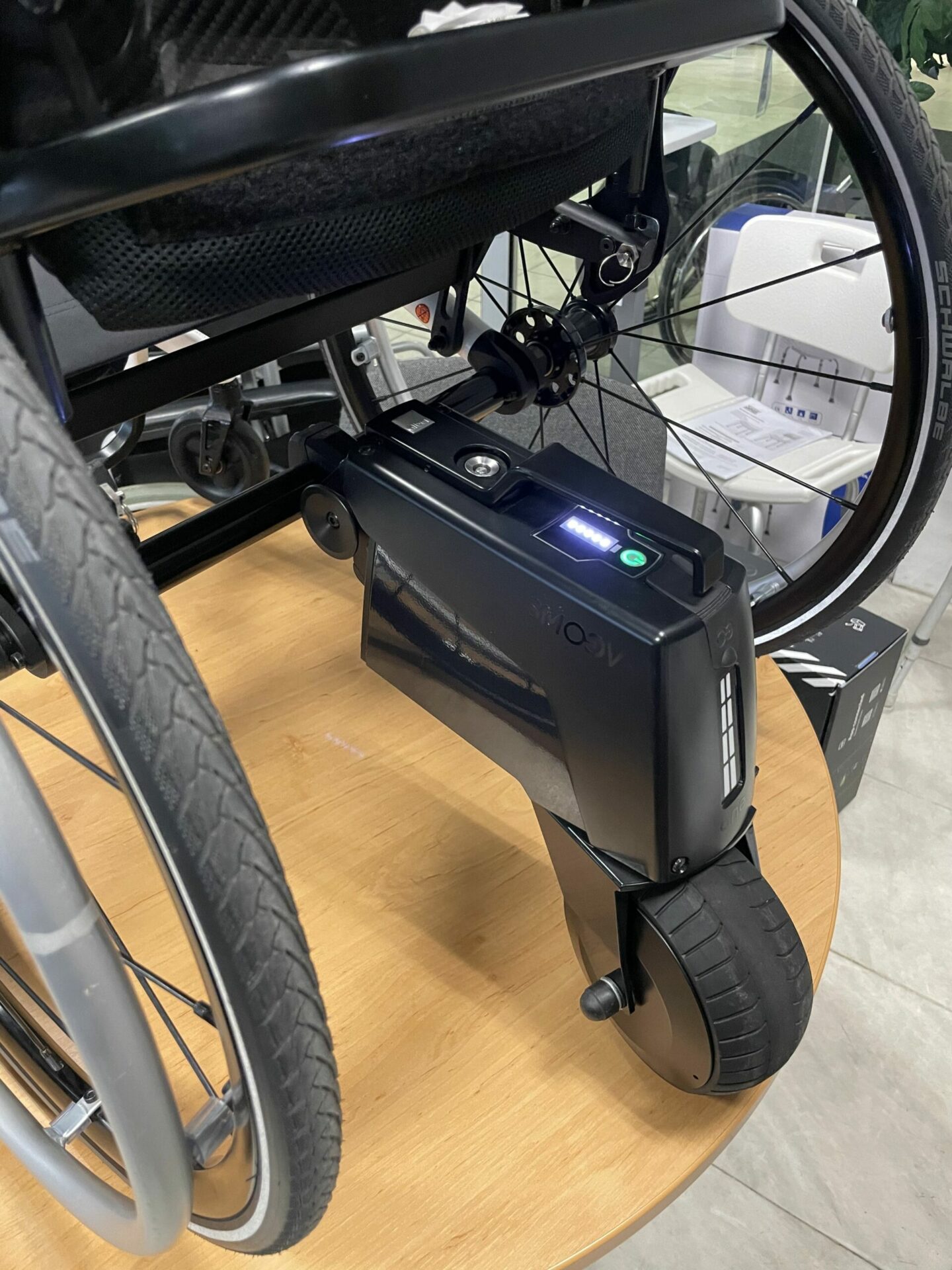 Tento přídavný pohon je předváděcí kus a z tohoto důvodu je na něj snížená záruka! Předvedení a vyzkoušení přídavného el. pohonu je možné. Pohon Smoov One je umístěný na centrále v Hradci Králové. Nelze využít příspěvek od zdravotní pojišťovny.