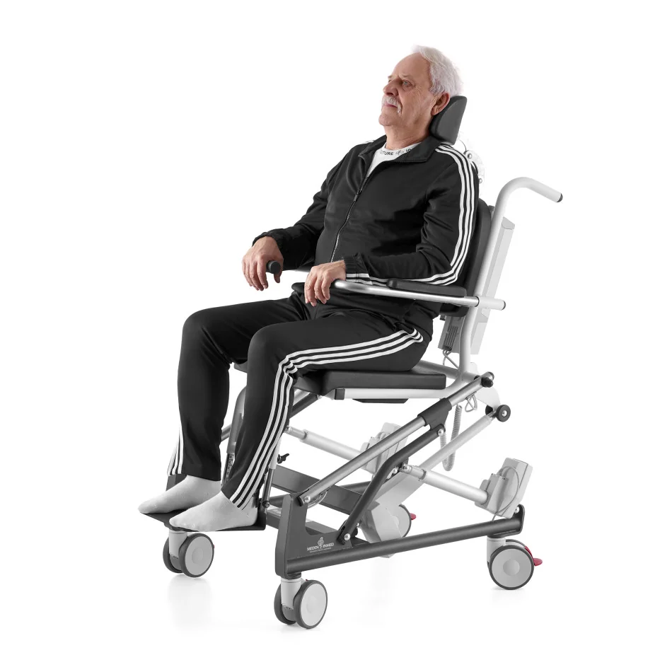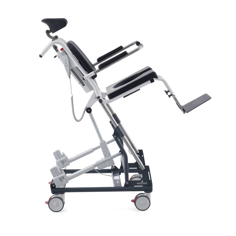 MoHiCan II sprchovací a toaletní křeslo s nastavením polohy usnadňuje jak pečující osobě tak samotnému klientovi snadné manévrování a změnu výšky nebo sklonu sedadla. To umožňuje klientovi setrvávat ve fixní poloze i po dlouhou dobu při každodenních činnostech spojených s hygienou. Je vhodné pro použití v nemocnicích, sanatoriích, pečovatelských domech, domácnostech a dalších pečovatelských centrech. Mobilní hygienické křeslo je navrženo tak, aby pomáhalo při přepravě a provádění každodenních hygienických a toaletních činností osobám se sníženou pohyblivostí. MoHiCan II je chráněno před vodou a nečistotami. Optimální nastavení polohy klienta se provádí pomocí ručního ergonomicky tvarovaného dálkového ovladače.